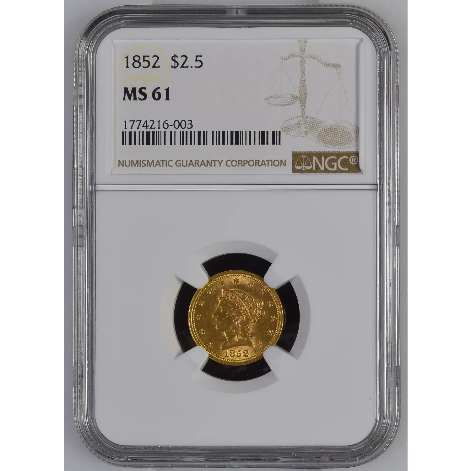 1852 $2.50 Gold Liberty Head Quarter Eagle NGC MS-61