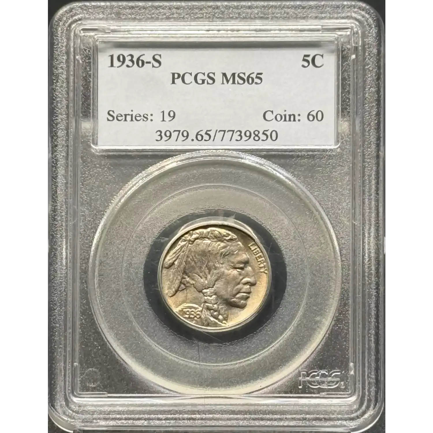 1936-S Nickel Indian Head or Buffalo PCGS MS-65