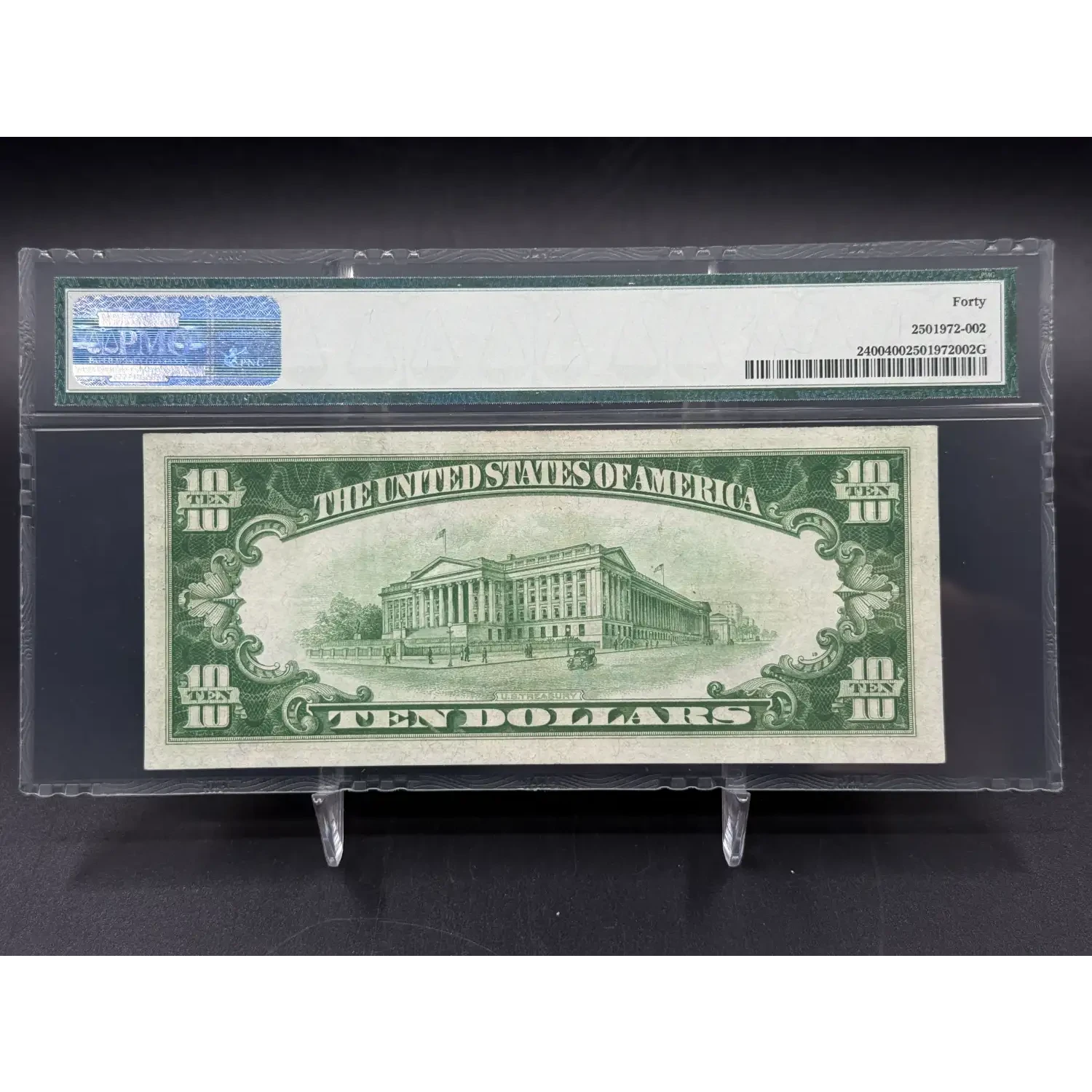 1928 $10 Gold Certificate PMG XF 40, Woods Mellon Signature