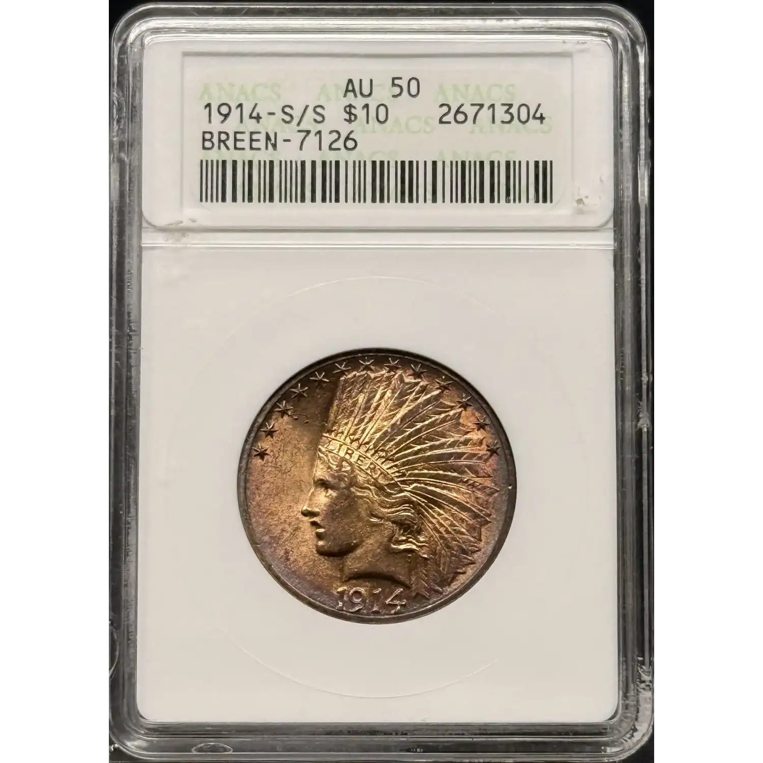 1914-S/S Gold Eagles $10 Indian Head ANACS AU-50 Breen- 7126