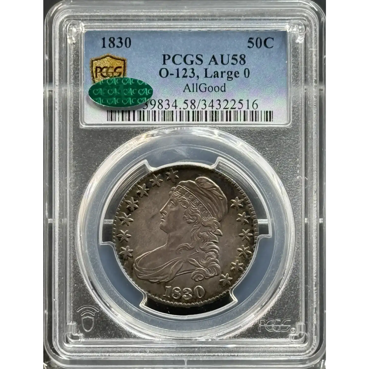 Read more about1834 Capped Bust Half Dollars PCGS AU-55 Large Date, Large Letters O-103 CAC