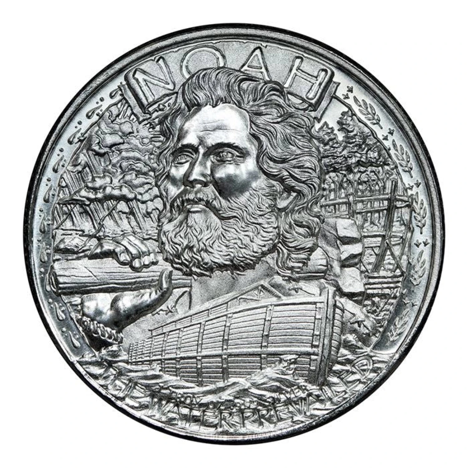 The captivating imagery on this silver round portrays Noah's Ark resting atop the waves, surrounded by a dove carrying an olive branch. This design symbolizes hope and renewal, resonating with many and making it a meaningful addition to any collection. The reverse side of the round typically features the weight and purity, ensuring authenticity and quality.
