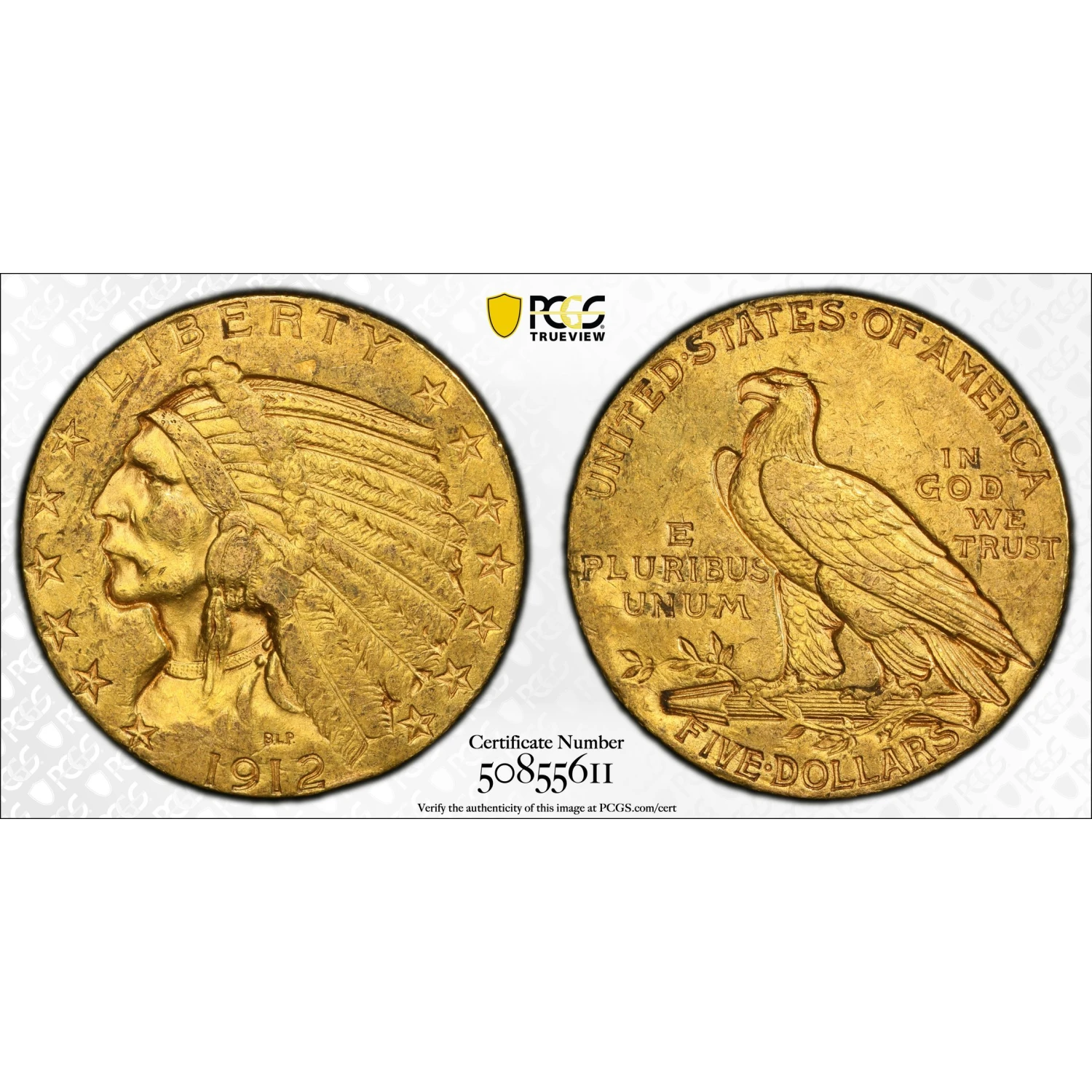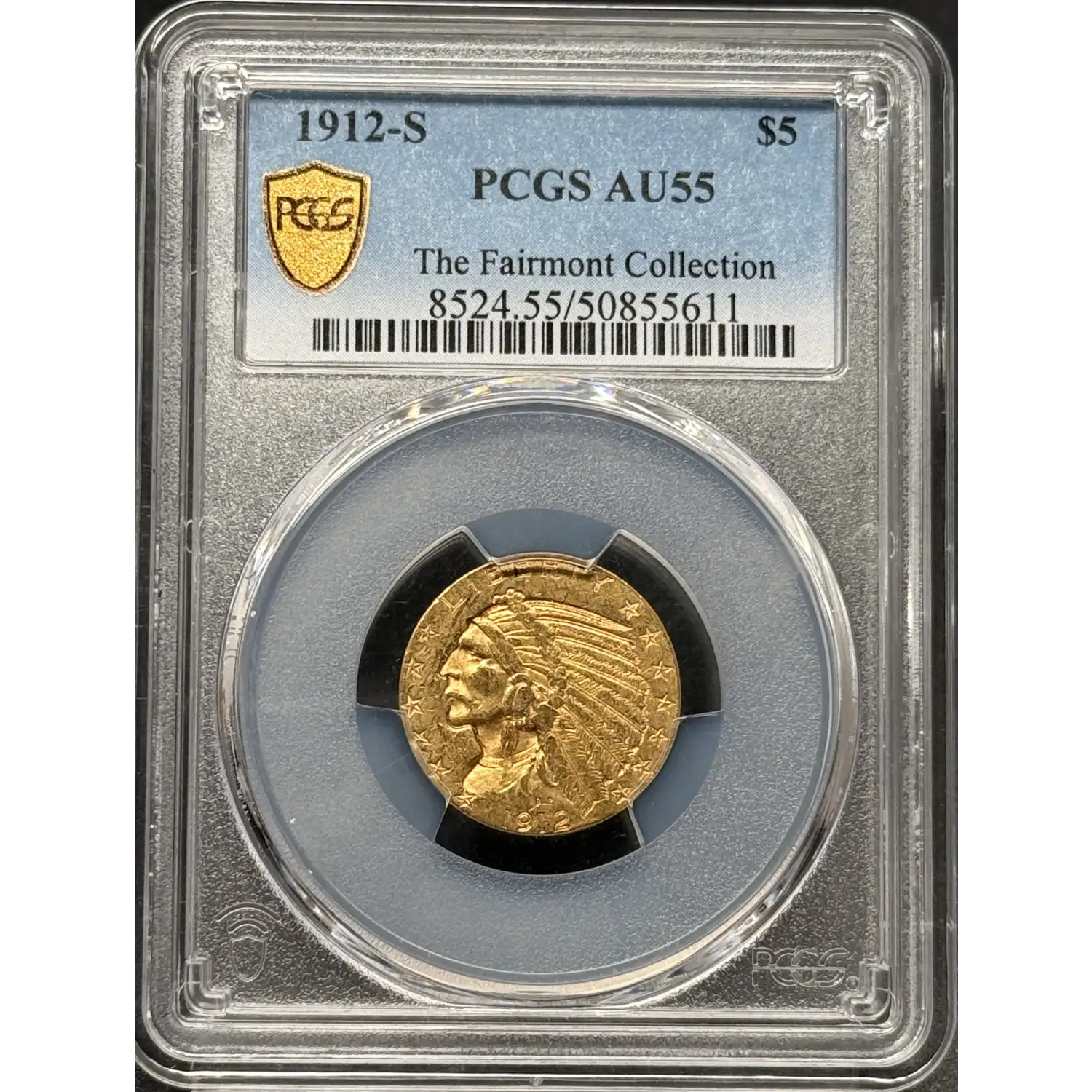 1912-S Gold Half Eagles $5 Indian Head PCGS AU-55 Fairmont Collection