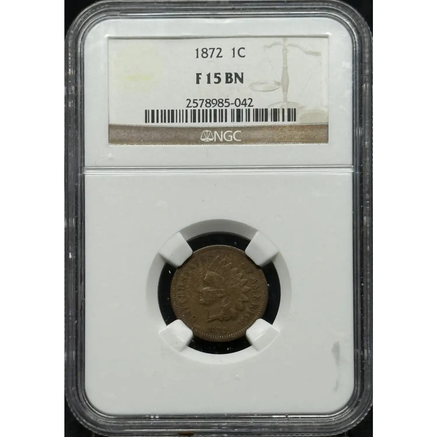 1872 Small Cents Indian Head NGC F-15 BN