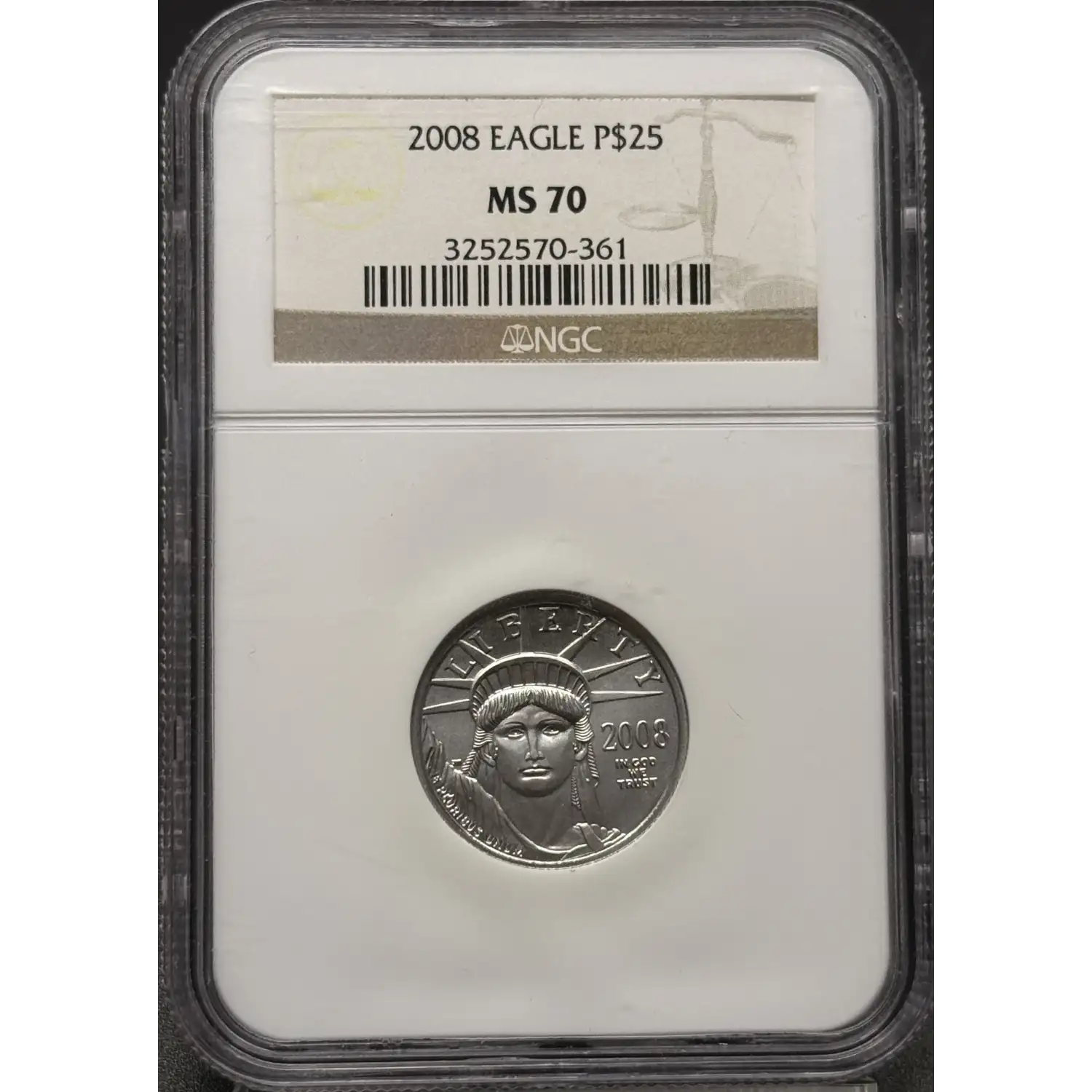 2008 Bullion $25 Platinum Eagle 1/4 oz NGC MS-70