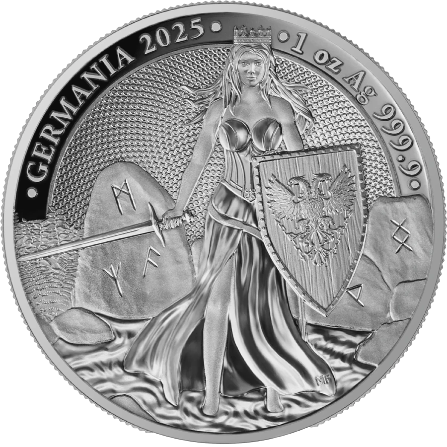 Enhance your investment and collection today with the exquisite 2025 1 oz Germania Silver Proof Coin. Secure yours while supplies last, and witness the beauty of this remarkable piece as it transforms your bullion assets into a statement of elegance and value.