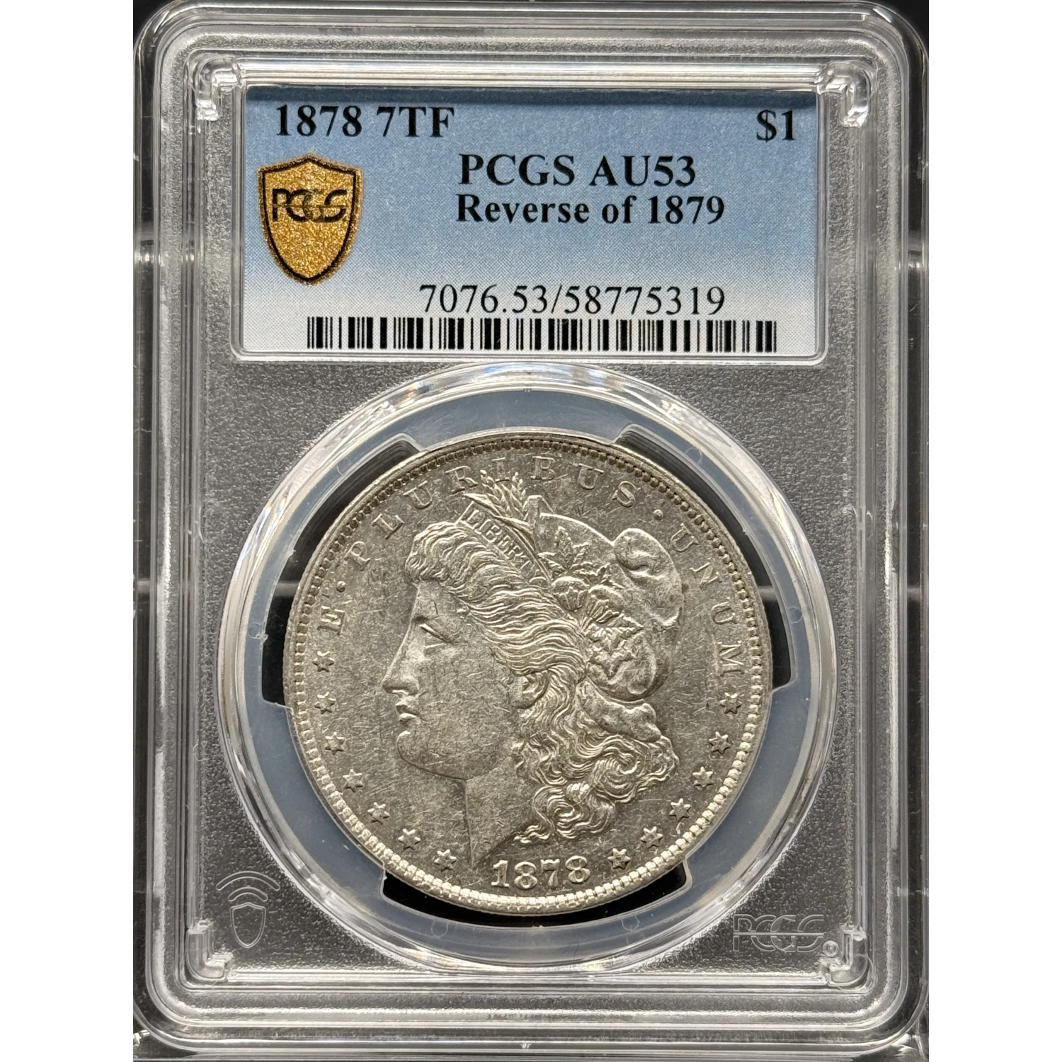 1878 Morgan Silver Dollar PCGS AU-53 7TF, Reverse of 1879