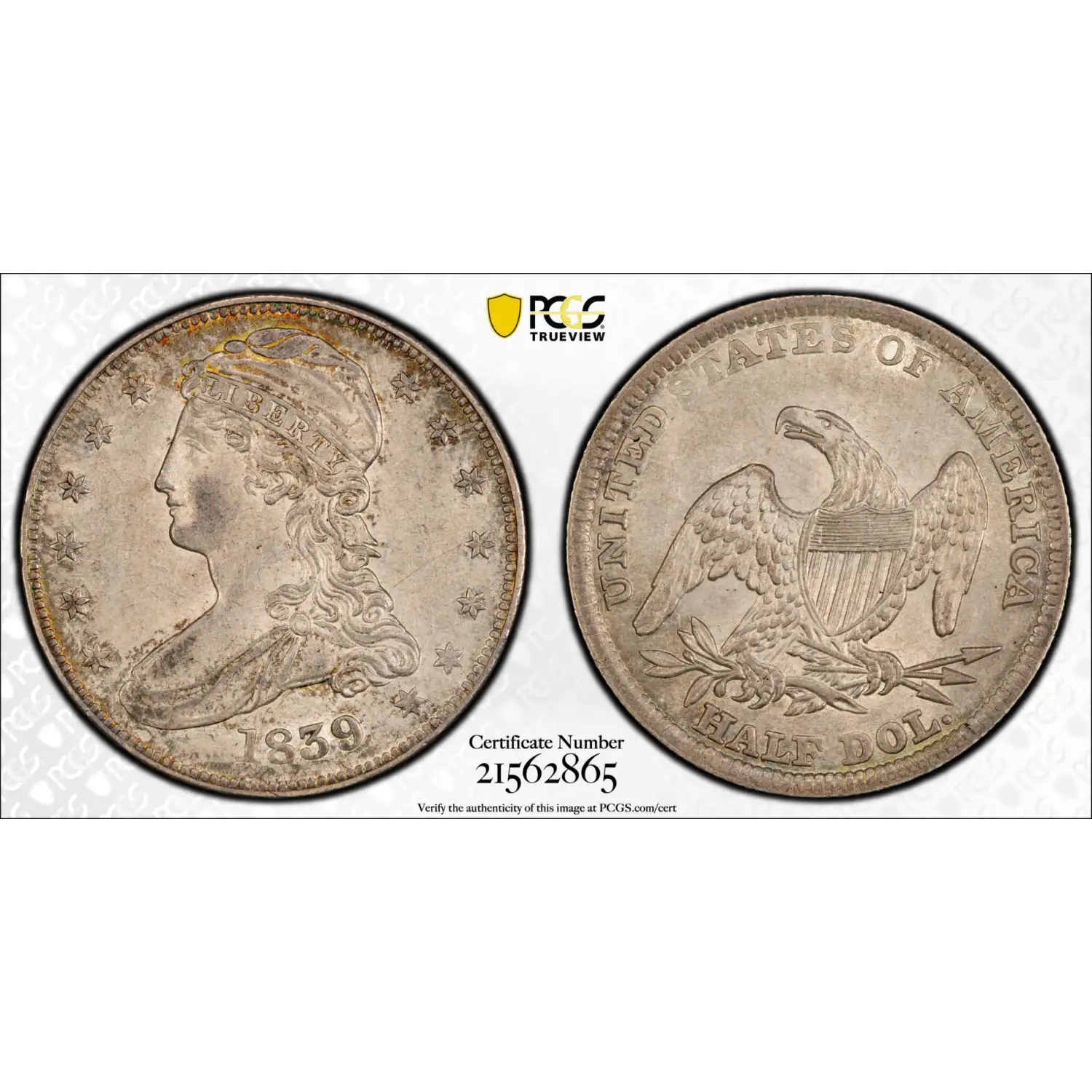 1839 Capped Bust Half Dollars, Reeded Edge PCGS MS-63 Large Letters