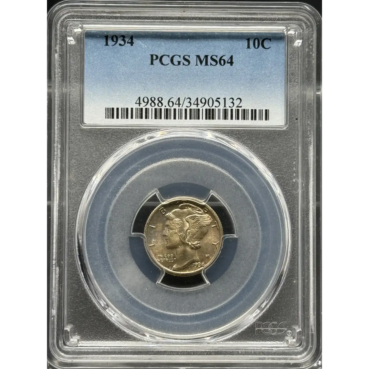 1934 Dimes Winged Liberty Head or Mercury PCGS MS-64
