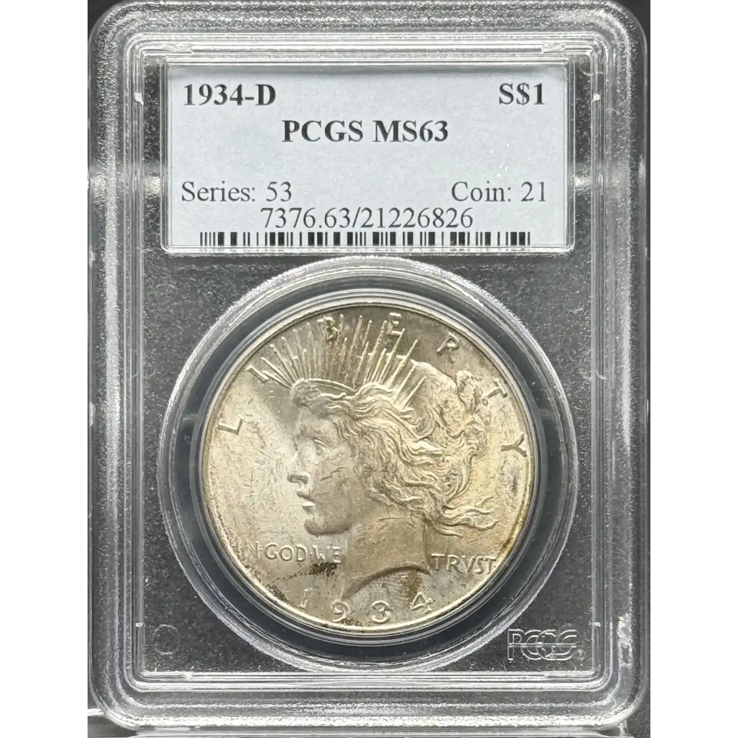 1934-D Peace Silver Dollar PCGS MS-63