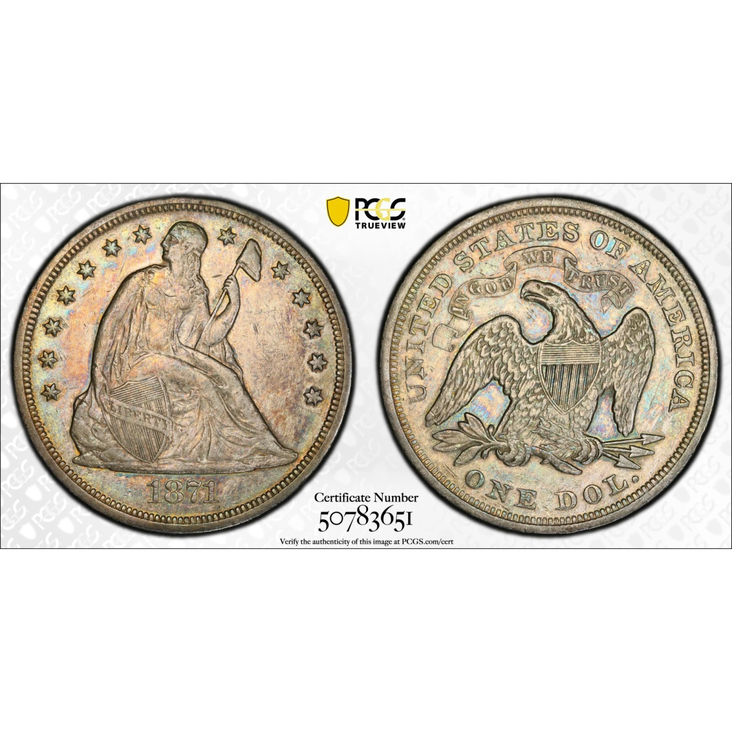 1871 Liberty Seated Silver Dollars PCGS XF-45