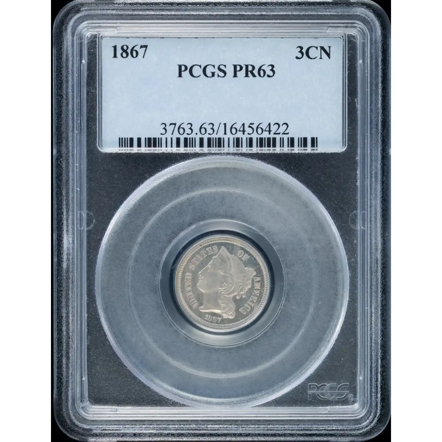 1867 Nickel Three Cent Pieces PCGS PR-63