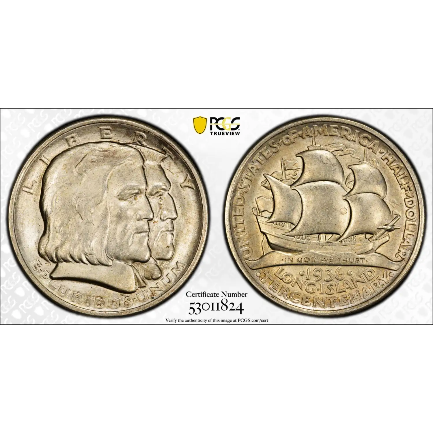 1936 Classic Commemorative Long Island Tercentenary PCGS AU-58